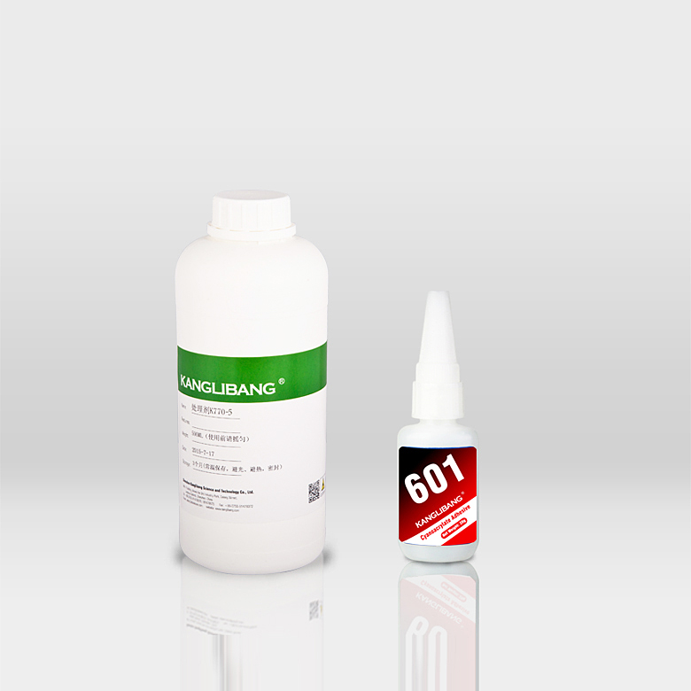 KANGLIBANG 601是一種單液型高強力瞬間膠水(俗稱快幹膠水),適合用於金屬(shǔ)、矽橡(xiàng)膠和多種塑料(如ABS、PC、TPU等)的自粘(zhān)或互粘,本膠水具有操作方便、優良的高粘接強度和加壓後快速固化的(de)特(tè)點。與(yǔ)K770係列處理劑或CL-25處(chù)理劑配合使用可(kě)廣泛應用於手機P+R工藝。