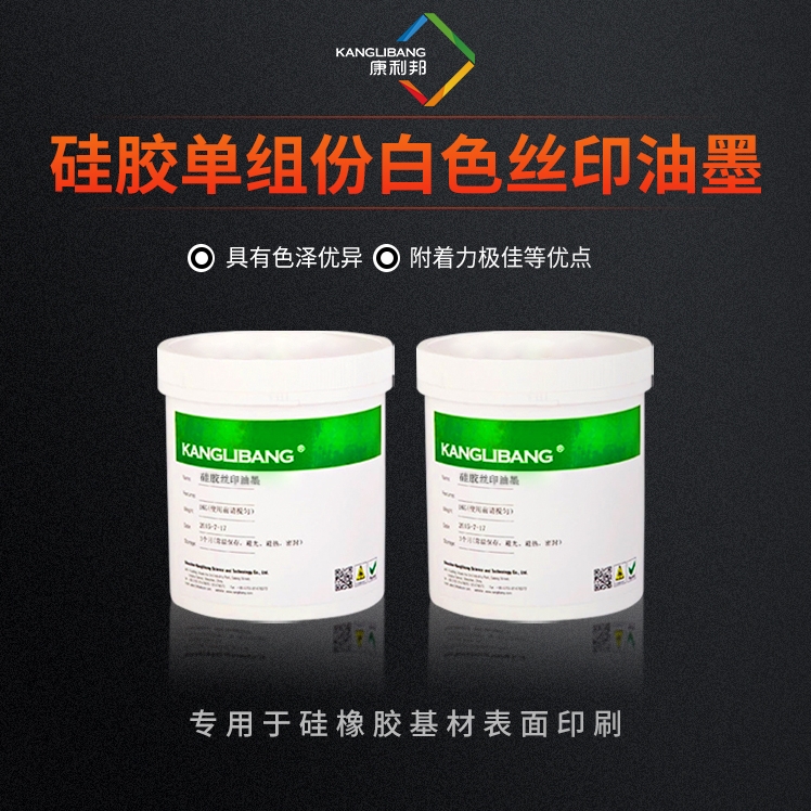 KANGLIBANG康利邦矽膠單組份白色絲印油墨(mò)本產品(pǐn)為單液型表麵印(yìn)字油墨,專用於矽橡膠基材表(biǎo)麵印刷,具有色澤優異、附著(zhe)力極佳等優(yōu)點。