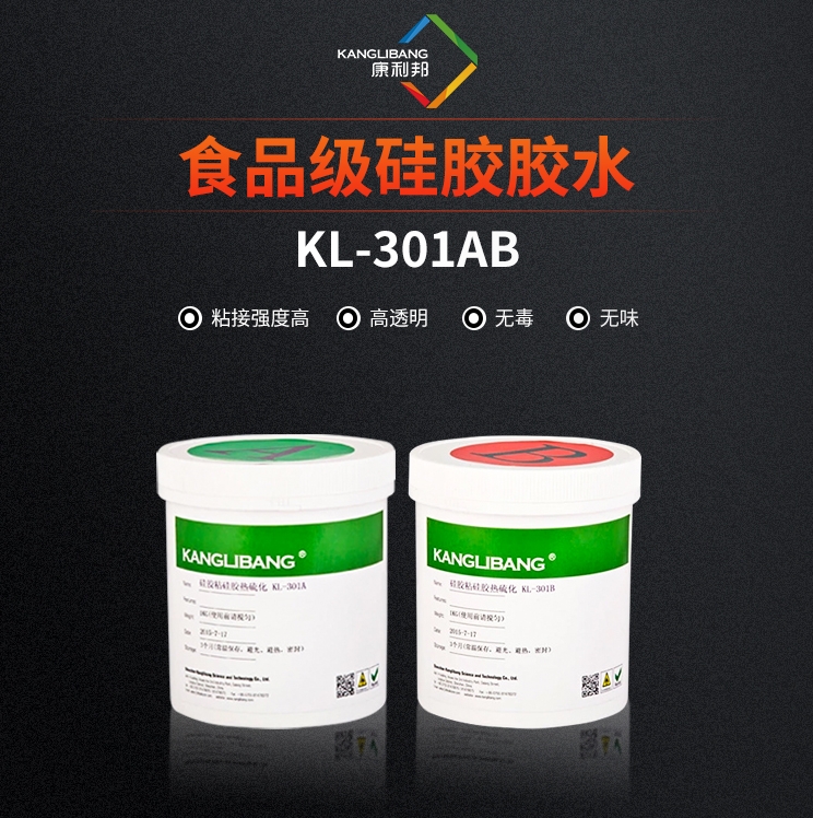 康利邦KL-301系列是(shì)粘硅胶专用的食品级胶(jiāo)水。此胶水过FDA、LFGB食品级安全认证.。