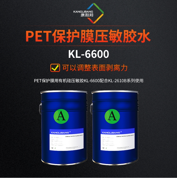 KANGLIBANGPET保護膜壓敏膠水KL-6600配合KL-2610B係(xì)列產品使用;調節6600添加比例即可調整矽膠保護膜的表麵剝離力。