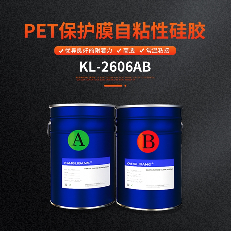 KANGLIBANG PET保護膜自粘性矽膠KL-2606AB為(wéi)加熱快(kuài)速固化的雙組份加成型液(yè)體矽橡膠,固化後與PET基材具有良好的附著力。膠料在固化(huà)前具有較好(hǎo)的流支(zhī)性;固化後具有(yǒu)優異的電氣絕緣性和(hé)高透明度,應用於電腦顯示器保護屏、手機保護貼等PET矽膠保護膜係列產品(pǐn)。