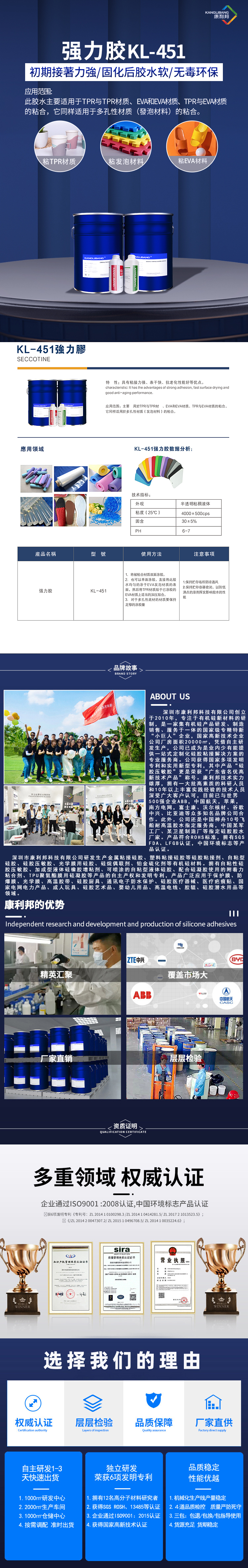 康利邦技術實力(lì)雄厚,擁有一大批高素質的科研人員和10年以上豐富實踐經驗(yàn)的技術人員,產品深受廣(guǎng)大客戶認可,已與眾多世界(jiè)知名企業(yè)如ABB、蘋果、穀(gǔ)歌、南方電網、富士康、中興、比亞迪(dí)、沃爾核材等合作。產品符合ROHS標準(zhǔn),擁有SGS、FDA、LFGB認證,中國環境(jìng)標誌等產品認證。…
