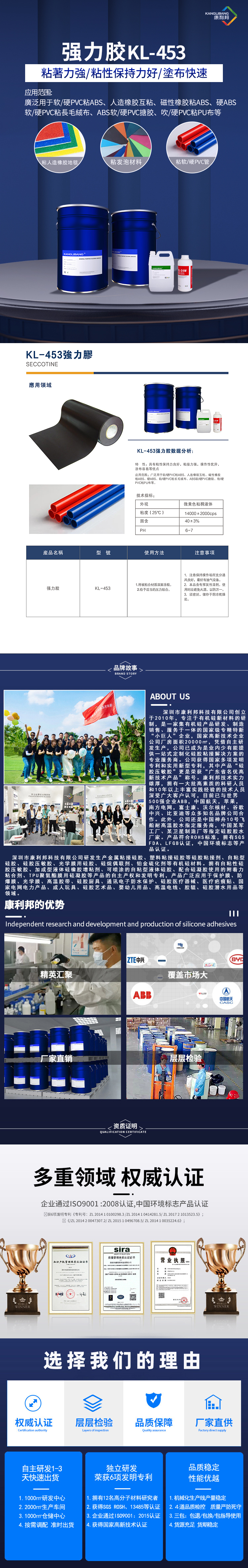 KL-453強力膠是一種特殊的聚(jù)氨酯型強力接著劑,由於KL-453強力膠應用範圍廣泛,其用(yòng)法的正確性和適用性,超出本公(gōng)司管控範圍,因此使用者在使用之(zhī)前需再做進(jìn)一步的確認(rèn)。